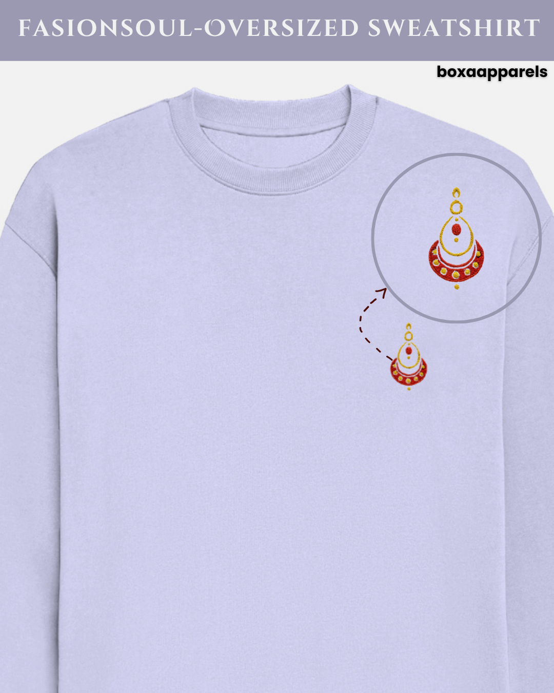 This oversized sweatshirt features a unique earring-inspired embroidery on the chest β a symbol of edge, grace, and unapologetic style.